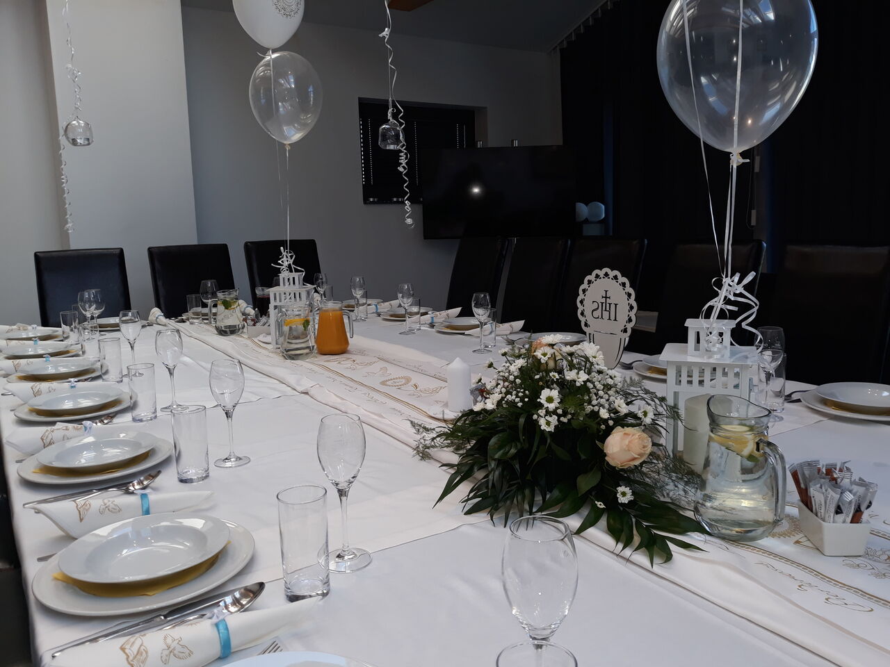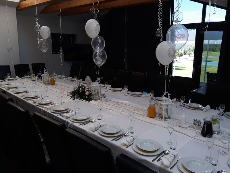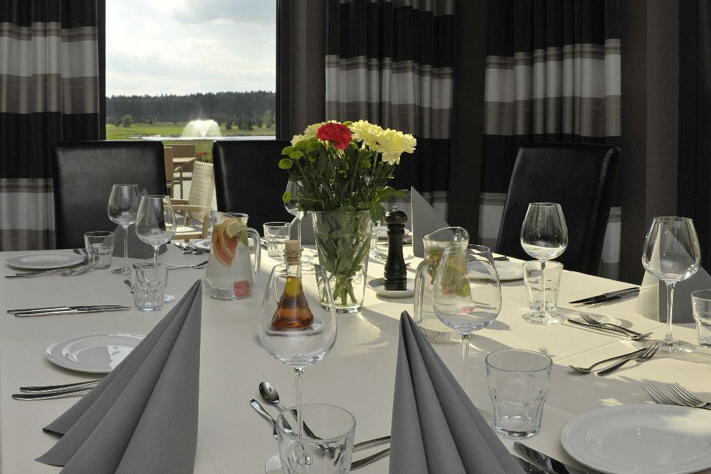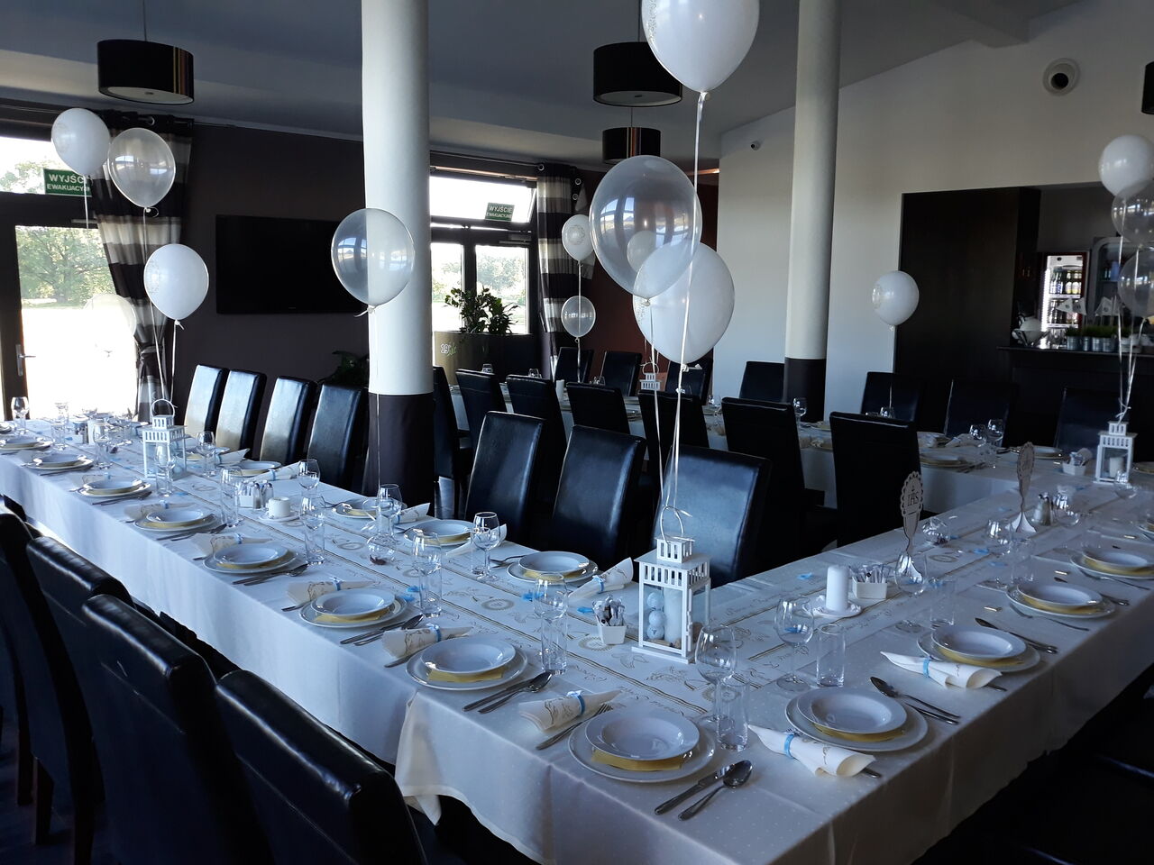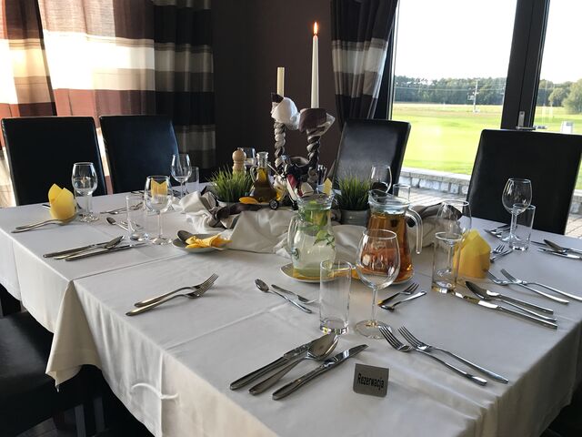 Mamy także odwagę podejmować się wyzwań związanych z wizytami tzw, klienta grupowego. Organizujemy imprezy okolicznościowe takie jak urodziny, imieniny, komunie, jubileusze, a także imprezy i eventy firmowe, konferencje, spotkania biznesowe. Słuchamy i jesteśmy otwarci na wszelkie kulinarne pomysły naszych klientów i gości. Często proponujemy naszym gościom powiązanie biesiady w naszej restauracji z pobytem w naszym hotelu i nauką gry w golfa.